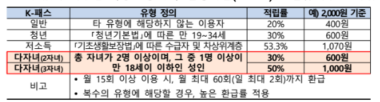 기존에는 일반 이용자, 청년층, 저소득층 위주로 혜택이 제공되었지만, 2025년부터는 다자녀 가구를 위한 새로운 환급 유형이 신설되면서 혜택 대상이 더욱 확대되었습니다.